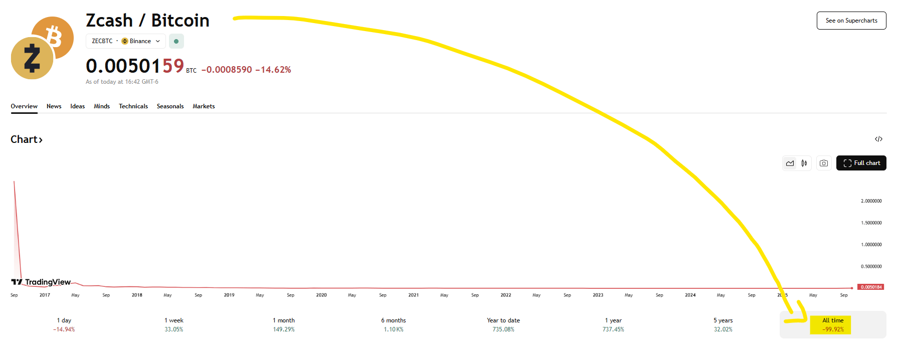 P.S. Zcash rallied more than 10x in the last few months and it's still down 99.9% in Bitcoin terms (it peaked at 4.43 BTC per ZEC back in October 2016).